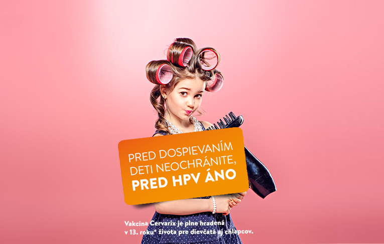 Cervarix je očkovacia látka na použitie od 9 rokov na prevenciu premalígnych anogenitálnych lézií (cervikálnych, vulválnych, vaginálnych a análnych) a karcinómov krčka maternice a anusu, ktoré príčinne súvisia s určitými onkogénnymi typmi ľudského papilomavírusu (HPV). Neočakáva sa, že prípravok Cervarix zabezpečí ochranu proti všetkým kolujúcim typom HPV. Vakcína Cervarix je viazaná na lekársky predpis. Starostlivo si prečítajte príbalovú informáciu dostupnú aj na stránkach www.sukl.sk a www.gsk-kompendium.sk. Je hradená z prostriedkov verejného zdravotného poistenia pre osoby v 13. roku života. Očkovanie vykonáva lekár injekciou do svalu. O očkovaní sa poraďte s lekárom Vášho dieťaťa. Prípadné nežiaduce účinky, prosím, nahláste aj na sk-safety@gsk.com. Reklamný materiál je určený laickej verejnosti ako súčasť očkovacej kampane schválenej MZSR číslo: 13/2019-OF